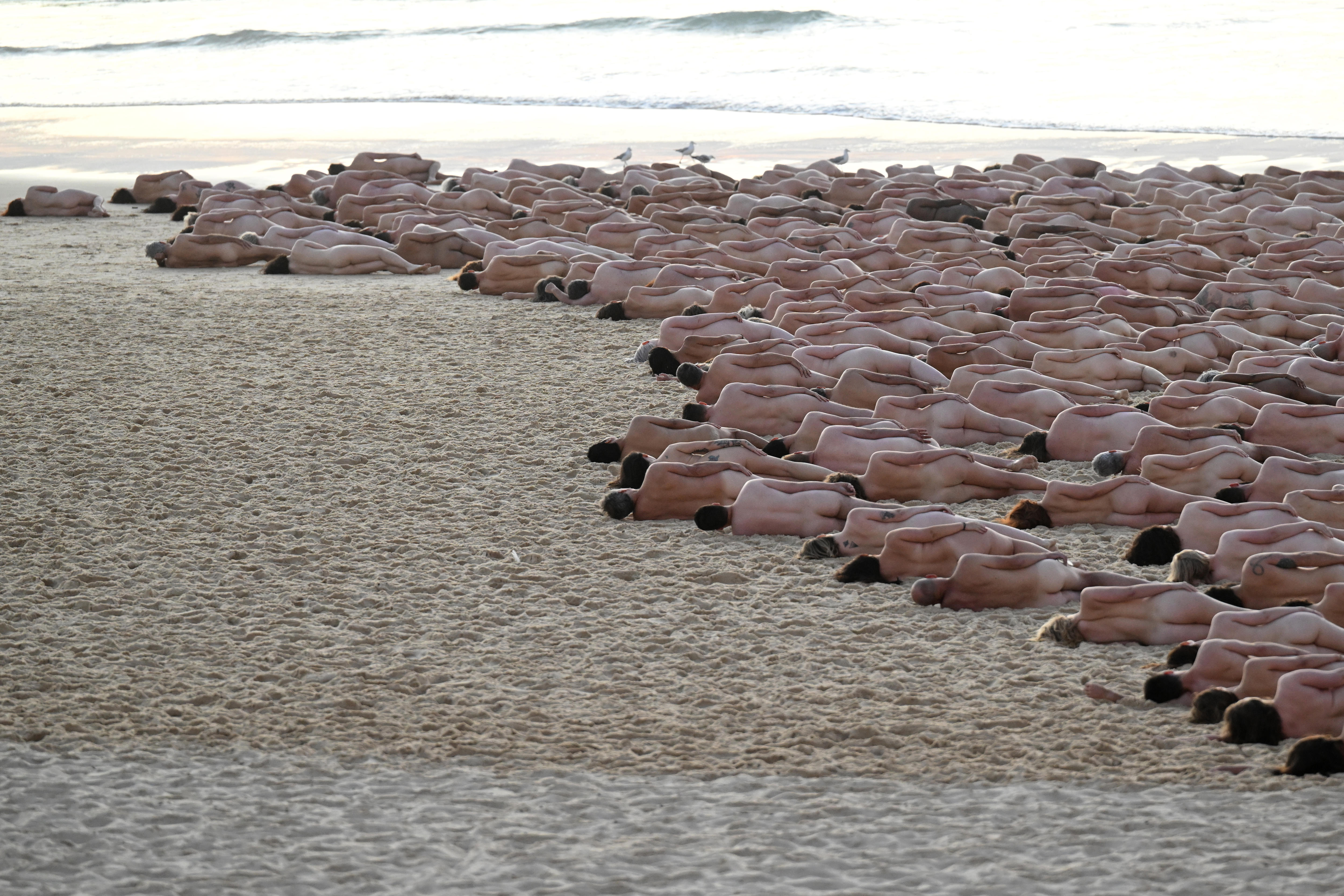20 hours ago30 November 26 2022 640 AM 1 min read Some 2500 naked volunteers have posed in the early morning light on Sydneys Bondi Beach for an artwork designed to raise. Members of the public pose at sunrise for photographic artist Spencer Tunick at Bondi Beach on November 26 2022 in Sydney Australia. Sydneys Bondi Beach saw a sea of swimsuit-less.